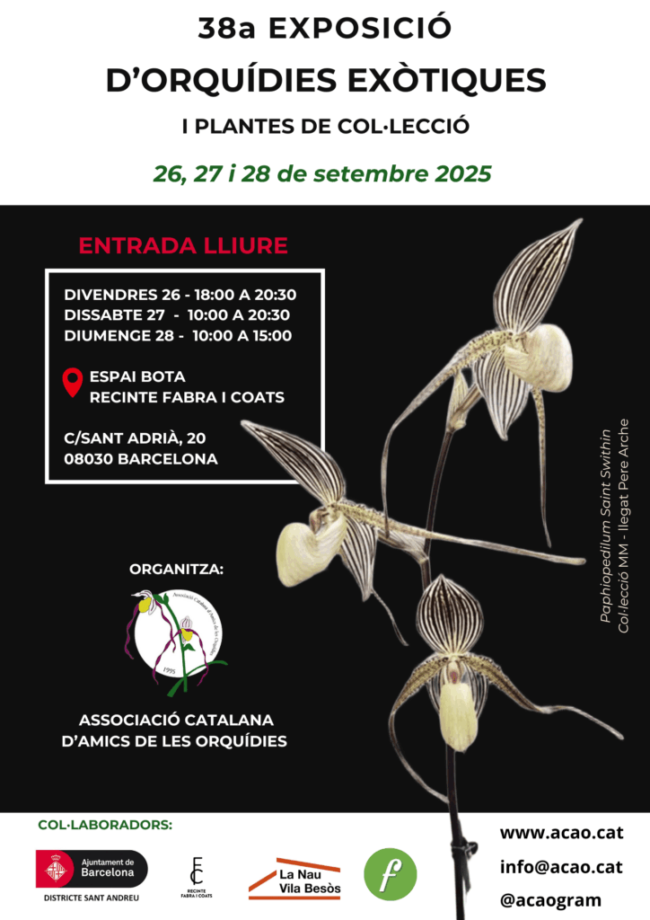 Els dies 26, 27 i 28 de setembre de 2025 Barcelona es transformarà en el paradís de les orquídies amb la 38a edició de l’Exposició d’Orquídies Exòtiques i Plantes de...